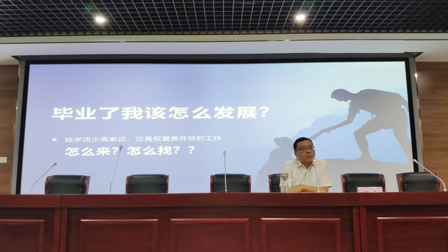 講座伊始,陳丹圍繞職業生涯選擇的若干關鍵問題的主題,向同學們介紹應該如何正確地選擇職業,怎樣培養良好的就業心理。陳丹告訴18級畢業生無論日后面對的是機遇還是挑戰,都要有勇氣有決心去面對。接著,陳丹還從公職類、創業類、社會就業類三個方面向同學們分析了各個職業平臺的利弊,通過真實的案例讓同學們更清楚地了解當前的職業現狀,讓同學們對職業和職場有更清晰的認知。陳丹指出:無論日后同學們選擇哪一條路,都要考慮自己是否可以創造價值,還要考慮怎樣選擇一個好的平臺,這個平臺可不可以快速提升自己的職業價值。一個會創造價值并且有著職業價值的人在面對職場時會有無限的動力和可能性。