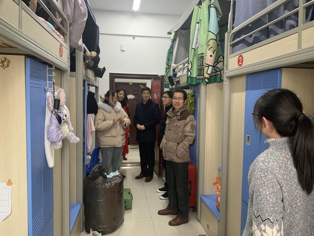 臨近期末學生離校時間,秉持著對同學們的關心與重視,文傳學院黨政主要領導帶領學工隊伍一行前往學生宿舍檢查了學生離校工作。他們詢問了宿舍管理人員學生離校時的相關工作,并對她們的工作提出了相應的建議:宿管人員要認真進行宿舍安全檢查,為同學們安全離校做好準備工作;要準確掌握學生離校情況,做好學生離校信息登記,保證離校學生的安全,守好離校第一道安全防線。與此同時,學院黨政主要領導一行人還專門進入學生寢室對未離校同學表示關心與問候,并與同學們進行了親切友好的交談。他們仔細叮囑同學們要注意離校安全,安排好假期生活,做好疫情防護措施,回家途中與老師、朋友、家人保持聯系,提高自我防護意識,保證行程安全。
