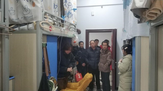 110日,語言文化與傳媒學院黨政主要領導帶領學工隊伍一行前往學生宿舍,走訪探望在校學生。