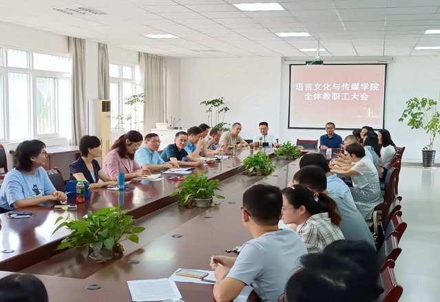 8月26日上午,語言文化與傳媒學院在二樓會議室召開了秋季新學期全體教職工大會,學院領導班子成員及全體教職工參會,會議由院長丁增武主持。