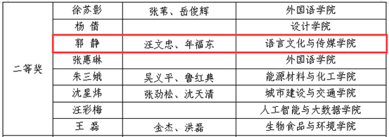 近日,合肥學院公布第三屆課程思政教學競賽獲獎情況,語言文化傳媒學院郭靜老師榮獲二等獎。