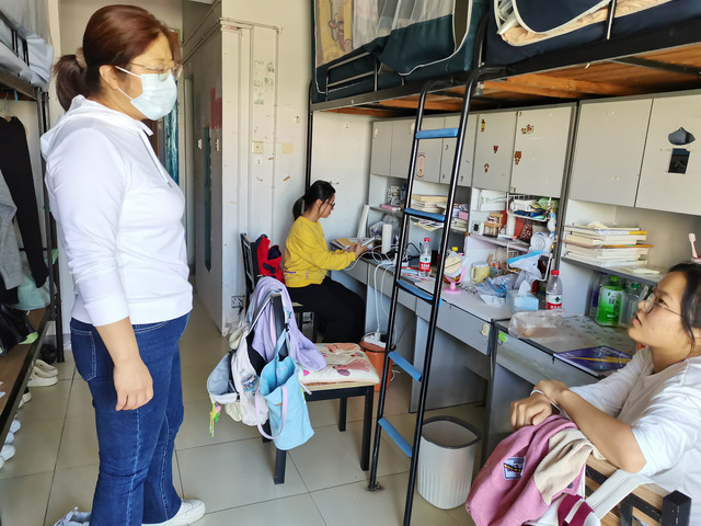 副書記張愛萍帶領輔導員顧盼盼和柳守志查看了香怡1123級女生宿舍和桂苑622級女生宿舍。走訪過程中,老師們親切地與同學們交談,引導大家提高衛生質量,做好秋季流行病和傳染病的預防,重點了解班級綜合測評和其他評優開展情況,鼓勵同學們做好個人總結,查漏補缺,努力學習,積極參加社會實踐活動,爭取在下一學年里取得更好的成績。
