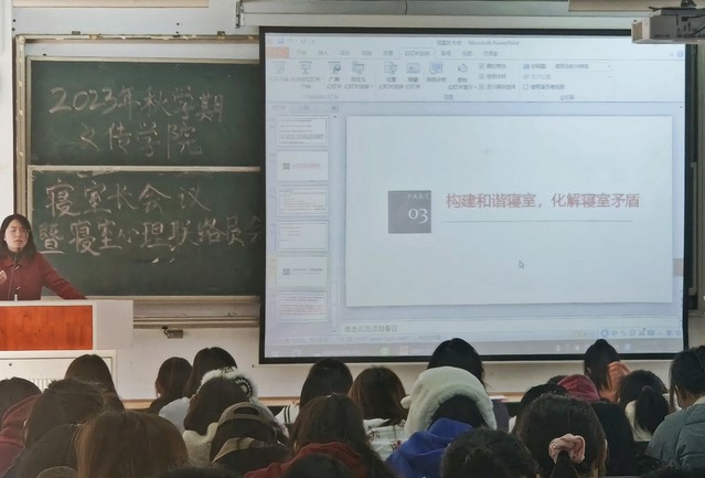 為充分發揮寢室長、心理聯絡員在學院心理健康教育中的重要作用,進一步加強學生安全管理,1117日,語言文化與傳媒學院在5號樓101教室召開了2023年秋學期寢室長暨心理聯絡員會議,學工辦主任顧盼盼和各年級寢室長、心理聯絡員參加了本次會議。