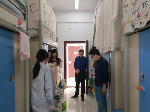 在走訪過程中,老師們與學生親切交流,向我院學子送去關心和問候,耐心傾聽并解答學生關心的問題,叮囑同學們做好宿舍內務衛生和注意安全問題。對于即將到來的五一假期,老師們囑咐學生嚴格遵守外出請銷假制度,有出行安排的同學一定要注意人身安全、食品安全、交通安全,同時提醒同學們注意防火、防盜、防溺水,防網絡電信詐騙。