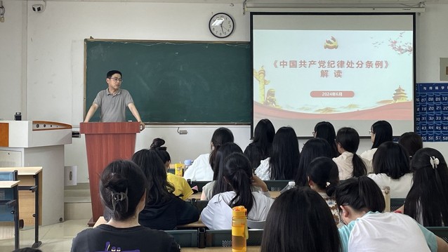 課上,殷明明圍繞《中國共產黨紀律處分條例》,從其歷史沿革、重要意義開始講起,并結合紀律處分的種類及重點內容進行了全面、系統的解讀。他強調,學生黨員要從自身做起,進一步增強組織紀律觀念。自覺做到遵守黨的紀律不動搖,執行黨的紀律不走樣,時刻用黨的紀律嚴格要求和約束自己,規范自己的一言一行。